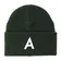 シンプルなアクリル糸のニット帽。折り返しのフロント部分はフェルトのアップリケ。程よい締め付けのダブル編み地。