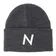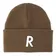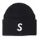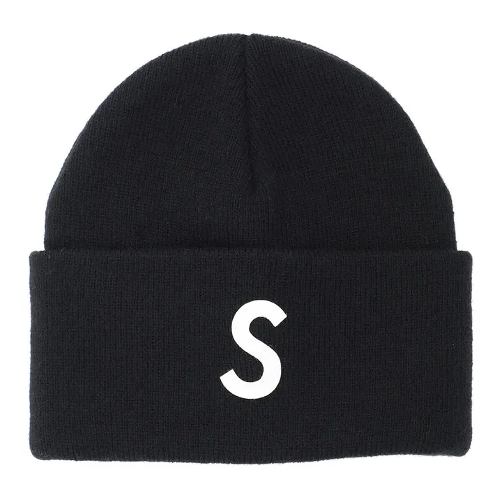 シンプルなアクリル糸のニット帽。折り返しのフロント部分はフェルトのアップリケ。程よい締め付けのダブル編み地。