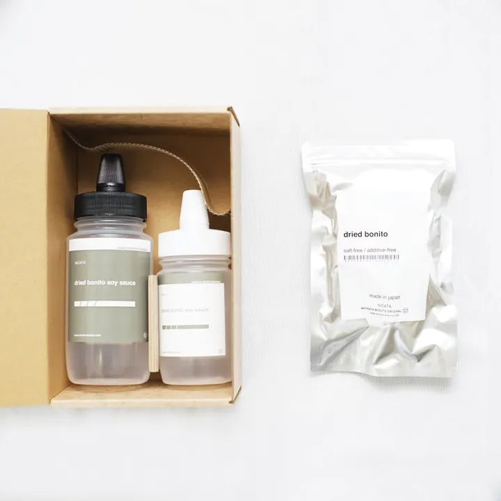 ※醤油は付属されておりません。ご自身のお好きな醤油でお作りください。 ●だし醤油の作り方 節をボトルに3~4本入れ、そこへお好みのお醤油を注ぎます。 蓋を閉めて、冷蔵庫で10日間ほど寝かせていただくと、だしの旨味を存分に味わえる、香り高き 万能だし醤油の出来上がりです。 醤油の継ぎ足し可能でお楽しみ頂けます お好みで ニンニクや昆布、梅じそや青唐辛子などを漬け込んでも。