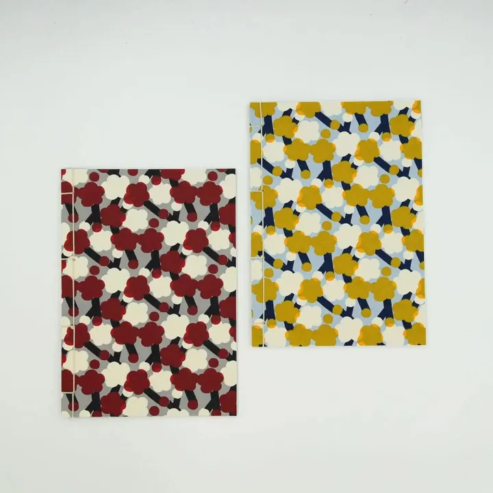 伝統文様と職人技が織りなす、美しく実用的な和綴じノート 「幸せの文様」シリーズは、日本の伝統文様が持つ「幸せを願う意味」に着目し、テキスタイルデザイナーとともに生み出したFuwa Marketオリジナルデザイン。 シリーズの一つである梅は、その美しさ、生命力、高貴さ、そして香り高いイメージから、古来より人々に愛されてきた文様。 縁起の良いモチーフを、現代のライフスタイルになじむようモダンにデザインしました。 ✔ こだわりの職人技:京都の専門工場で一点ずつ丁寧に仕上げ ✔ モダンな伝統文様:6種類の文様×2色展開で選ぶ楽しさ ✔ 丈夫で長持ち:糸でしっかりと縫い合わせているためとても丈夫 ✔ 上質な贈り物にも:特別な想いを伝える「幸せの文様」  書くことが楽しくなる日本の美が詰まった一冊 和綴じは、日本の伝統的な製本技術。糸で紙を縫い合わせて、表紙と背表紙を一体化させたノートです。 手作業で丁寧に綴じられたノートは、優しい開き心地で使い込むほどに手になじむ味わい深さが魅力。 糸でしっかりと綴じられているため、ページが抜け落ちにくく、長く愛用できます。 万年筆や筆ペンとも相性がよく、書き心地も抜群。日記や、旅の記録帳、スケッチブック、詩集、アイデアノートなど、日々の書き物を特別な時間に変えてくれます。 手染めの魅力が際立つディテール この和綴じノートに使われている手染め和紙は、京都の専門工場で友禅和紙染色職人が一つひとつ手作業で仕上げています。 伝統技法による深みのある色彩と独特の風合いが魅力です。  柄のアップをみると、手染めならではの繊細な色の重なりが感じられます。 微妙な濃淡やにじみが手作業ならではの風合いを引き立て、唯一無二の美しさを演出。 一版ごとに丁寧に染め上げることで、単なるプリントでは表現できない奥行きと温かみが生まれます。    細部にまでこだわった、和の美しさを引き立てる仕上がり。 使うたびに日本の美しい職人技と伝統文様の意味を感じられます。 職人の手仕事により生み出される、この風合いと温もりの魅力をぜひ感じてください。 梅文様に込められた願いや祈り 無病息災の梅 寒風吹きすさぶ中に凛と咲き誇る可憐な花。ほのかな甘い香りとともに、いち早く春の訪れを告げます。 しんと静まり返った冬景色の、赤、ピンク、白のあざやかな彩りは、生命の息吹さえ感じさせてくれます。 日本最古の歌集『万葉集』には「梅」をテーマにした歌が多く残されており、古来より人々を魅了してきました。 梅にちなんだ縁起物と言えば、元旦に飲む梅干しと昆布を入れたお茶「大福茶」。その起源は、平安時代中期に村上天皇が病気のときに飲み、回復したこと。 1年の無病息災を願いながら飲むようになりました。 温かみのあるレッド系と、 明るくポップなイエロー系の2色展開。落ち着いた色合いながらも個性があり、日々の書き物を彩るアイテムとしても最適です。 ※大きな紙をカットして作るため、柄の配置には個体差があります。ご了承ください。 「幸せの文様」シリーズのラインナップ Fuwa Marketの「幸せの文様」シリーズでは、6種類の伝統文様をモダンにアレンジしたデザインをご用意。 ・銀杏文様(銀杏の煌めき、幸運を呼ぶ) ・市松文様(粋な市松、伝統の美) ・梅文様(無病息災の梅) ・青海波文様(無限の波は豊かさの象徴) ・南天文様(魔除けの南天) ・松文様(松は繁栄のシンボル) お好みの文様を選び、デスク周りを華やかに彩ってください。 「職人技×伝統文様」の逸品は贈り物にも最適 「幸せの文様」シリーズは、日本の伝統文様が持つ願いを込めた特別なデザイン。大切な方へのプレゼントとしても喜ばれる、和の心を感じる上品な仕上がりです。 ・和雑貨好きのに友人や家族への誕生日プレゼントに ・入学祝い・卒業祝い・進学祝い・就職祝いなど新生活を始める人へのお祝いに ・幸運を呼ぶ縁起物としてお礼やプチギフトに ・海外の方へのお土産に お好みのデザインを選んで、日常に和の彩りを取り入れてみませんか? 【商品詳細】 ・サイズ(約):縦21cm(8.26in)× 横14,8cm(5.82in)× 厚み5mm(0.19in) ・素材:表紙 / オリジナル手染め和紙、中紙 / 紙 ・ページ数:50P ・生産:日本(京都) 【ご注意】 本商品に使用している和紙は、京都の職人が一枚ずつ手染めで仕上げています。そのため、まれに白い点やわずかな色ムラが見られることがございます。 手仕事による特性として、あらかじめご了承のうえご購入くださいますようお願いいたします。 地域や社会とのつながりも大切に Fuwa Marketのオリジナル商品はすべて、京都をはじめとする日本の職人によって丁寧に仕上げられています。 そのうえで、パッケージの準備やタグ付けなどの一部の軽作業を、関連会社の就労支援施設「tomoni(ともに)」と協力して行っています。 この連携は、Fuwa Marketの代表・西田の家族の経験をきっかけに生まれました。 ものづくりの現場に参加することで、利用者さんの自信や喜び