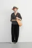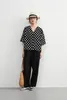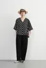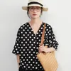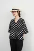 KNXT407-DOTドット柄半袖VネックセンターシームトップスCLEAN Style・シンプルプルオーバー BLKDOT/FREE