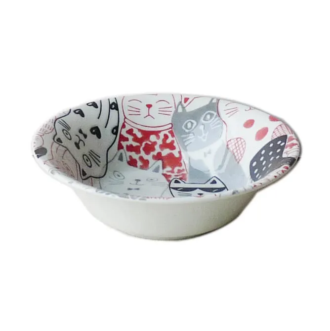 世界中で愛されるねこちゃんがユーモアと個性あふれるスタイルの8匹がぞろりぞろり。 釉薬と撥水の組み合わせで、より可愛らしい雰囲気に仕上がりました。 可愛らしい猫いっぱいの柄が特徴的で食卓が明るく彩ります。