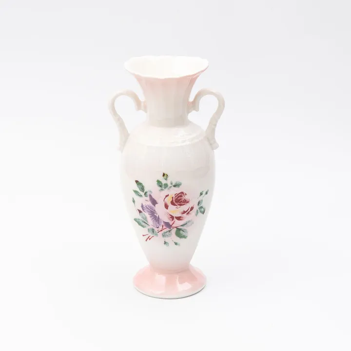 エレガンス手付花瓶[花柄/カントリー雑貨/陶器/薔薇/プリンセスローズ]日本製