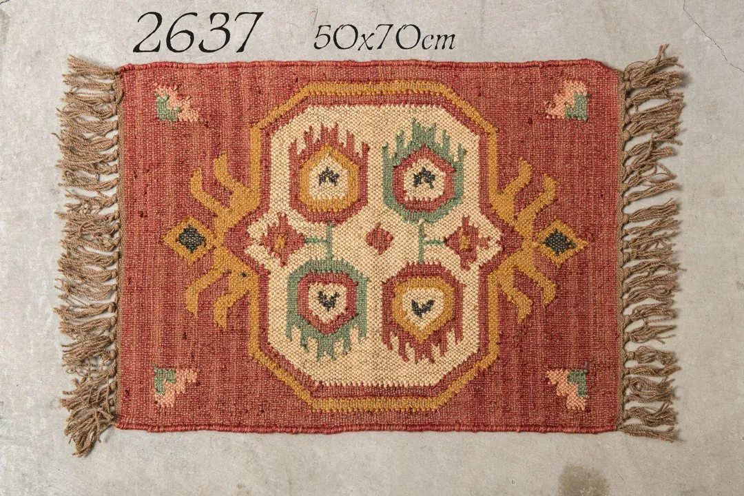 再生ペットボトルの糸を使用したインドキリムフロアーマット。再生糸の柔らかさの幾何学模様やトライバルデザインは室内外でご使用頂けます。