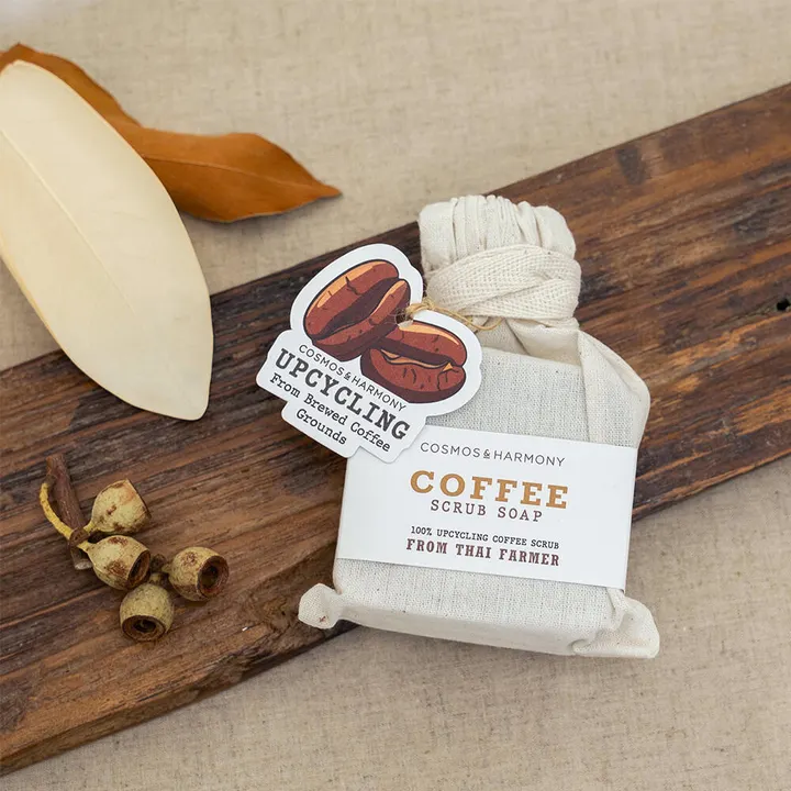 日本初上陸のタイのソープ&スキンケア商品ブランド「COSMOS&HARMONY」 ”From Thai Farmer” ~ タイの農家より ~ 天然の食材が豊富なタイ。COSMOS&HARMONY では自然の恵を大切にし、無駄にしない ようにセルフケア商品を作っています。 このアップサイクルスクラブソープはココナッツミルクを絞った後のココナツファイバーや カカオの殻、コーヒーのだし殻、米ぬか油生産時に残った米ぬかなどをアップグレード しています。 素材そのものの良さを活かしたナチュラルでお肌にやさしい洗い上がりです。 スクラブのマッサージ効果も気持ち良い石鹸です♪ 毎日使えて、お肌にも地球にもエコフレンドリーな石鹸で暮らしを豊かに。 【 4つのバリエーション 】 ・ココナッツ ミルキーでキャラメルのような優しい甘みのある香り ・カカオ ちょっぴりビターなココアのような、ほっと落ち着く香り ・コーヒー ほろ苦い淹れたてコーヒーのような豊かで凛々しい香り ・ライスブラン 心が落ち着くような素朴で暖か、ほんのり甘い香り 使用可能箇所:手・ 体 機械練 化粧せっけん ・着色料不使用 ・EDTA &エチドロン酸不使用 ・エコフレンドリー ・90% 天然由来成分使用 ・RSPO 認証パームカーネルオイル使用 ・ヴィーガンコスメ ※表示数量を超える在庫や、詳しい納期につきましてはメッセージよりお問い合わせください。 ※初回のご注文に限り1セット~送料無料となります。ご注文時には送料が含まれますが発送時に無料に変更いたします。 ・EDTA &エチドロン酸不使用 ・エコフレンドリー ・90% 天然由来成分使用 ・RSPO 認証パームカーネルオイル使用 ・ヴィーガンコスメ ※表示数量を超える在庫や、詳しい納期につきましてはメッセージよりお問い合わせください。