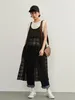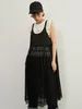 KNXO411-チェックレース・異素材ドッキング・レイヤード・シアーキャミワンピ BLACK/FREE