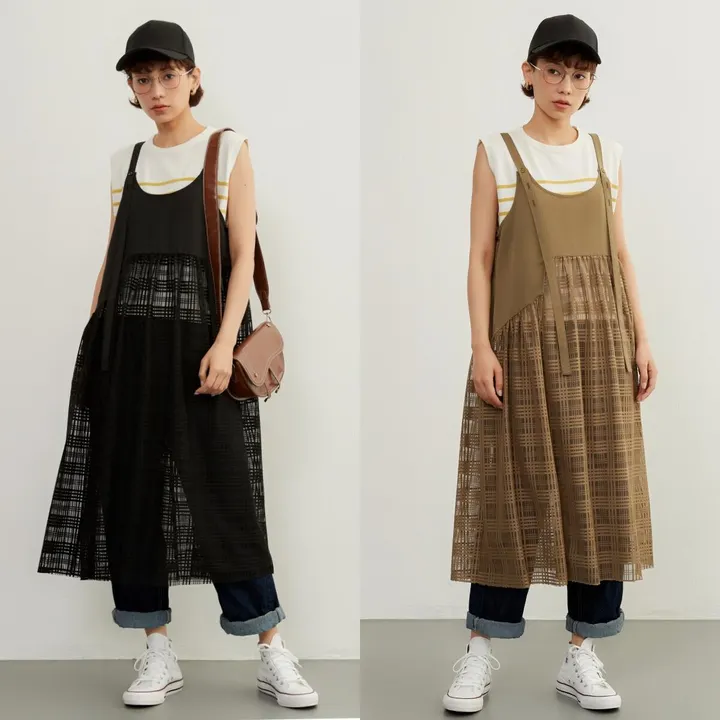 チェックレース・異素材ドッキング・レイヤード・シアーキャミワンピース スポーティでカジュアルなスタイルに、新たなアプローチ。チェックレースと異素材のドッキングが抜け感を演出する、カジュアルクールなシアーキャミワンピースです。 特徴: スポーティなチェックデザイン: チェックレースがスポーティなアクセント。遊び心あるデザインで、カジュアルな雰囲気を演出します。 異素材ドッキング: 異素材の組み合わせがモダンな印象を醸し出し、都会的でカジュアルなスタイリングを実現。 レイヤード効果で軽やかに: シアーな素材のレイヤードが、動きに軽やかさをプラス。アクティブなデイリーコーデに最適です。肩ストラップのボタンで長さ調節可能です。 スタイリングアイデア: スニーカーと合わせてカジュアルに: スニーカーをプラスして、街歩きやカフェでのくつろぎタイムにピッタリなカジュアルスタイルに。 キャップやバックパックでスポーティに: キャップやスポーツバッグと合わせて、スポーティでアクティブなスタイリングを楽しんで。 このシアーキャミワンピースで、カジュアルながらもおしゃれなスポーティスタイルを手に入れましょう。自由な着こなしで、新しいファッションを発見してください。 #ドッキング#ワンピース#キャミワンピ#レイヤード#チェック#年中#春夏#冬は重ねて#体系カバー#フリーサイズ#FREE#調節可能#スポーティ#ストラップ#シアー