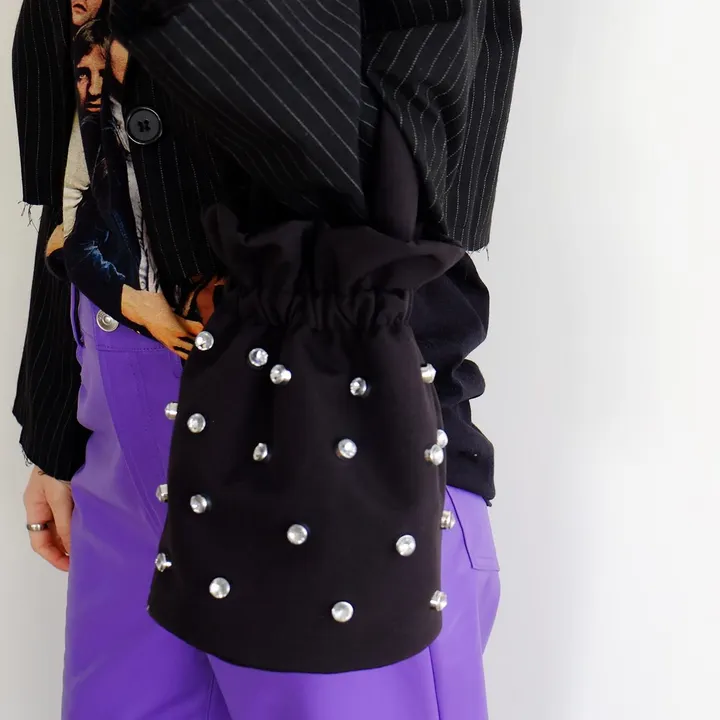 ≪5色展開≫ 2WAY 巾着 スタッズ ショルダー トート| kirakira 2way shoulder(C24003) 15-BLACK