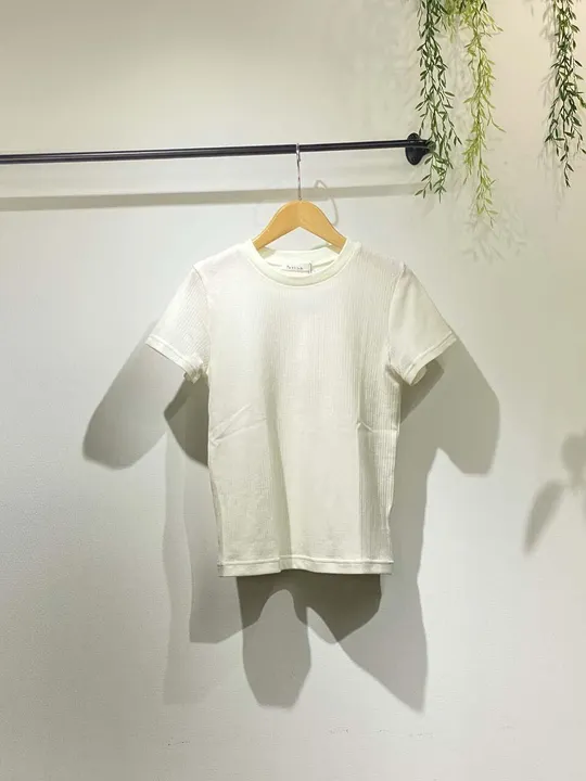 コンパクトなベーシックなTシャツは、素材で遊んでPartisanらしいレトロ感を表現。 衿ぐりに綿100%のフライスを使用。 コットンの強撚糸と捲縮性のあるポリエステルを交編したテレコ素材。 生地表面のしぼ感・縮み感が特徴的な生地です。 従来の薄手のリブ組織よりは、ポリエステルと交編することで 物性面でも優れた素材となっております。