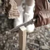 刃厚3.8mmの切れ味鋭いブレードにフルタング構造を採用したナイフ。高いデザイン性を備えながらもバトニングにも使える耐久性を誇ります。 ハンドル素材にはCombretum imberbe(リードウッド)という貴著フナ天然木を使用。成長が遅く緻密なこの木材は極めて硬質で 耐摩耗性と耐腐食性に優れています。また、ミラーフィニッシュのホローグラインドのブレードは食材のカットもスムーズに行えます。 付属のシースは使うたびに馴染む上質なレザー製です。
