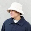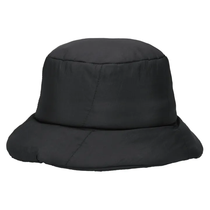 光沢感を抑えたナイロン生地を使用したバケットハット。中綿を入れた肉厚なボディにキルティングのような斜めのステッチデザイン。飾りテープやリボンが通せるループ付き。