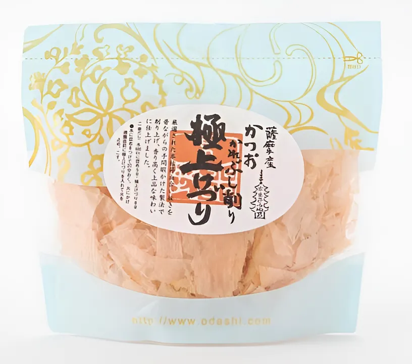 薩摩産の本枯節の血合いを丁寧に取り除き、手間ひまをかけて極薄く仕上げました。 花かつおよりも淡泊で、上品な味が特長です。 お吸い物など上品な料理に仕上げたいときは極上けづりがおすすめです。 この削り節の色と薄さは、うね乃の技術です。 こちらもトッピングとしてもお使いいただけます。
