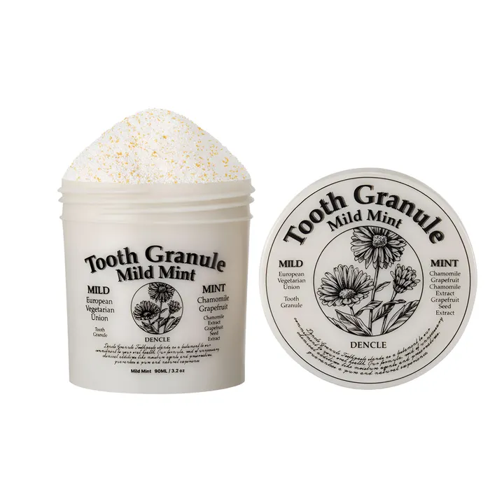 「デンクル トゥースグラニュール」は歯科工学を元に設計された韓国のオーラルケアブランド DENCLE(デンクル)により新開発された完全無水のヴィ―ガン歯磨き粉。
