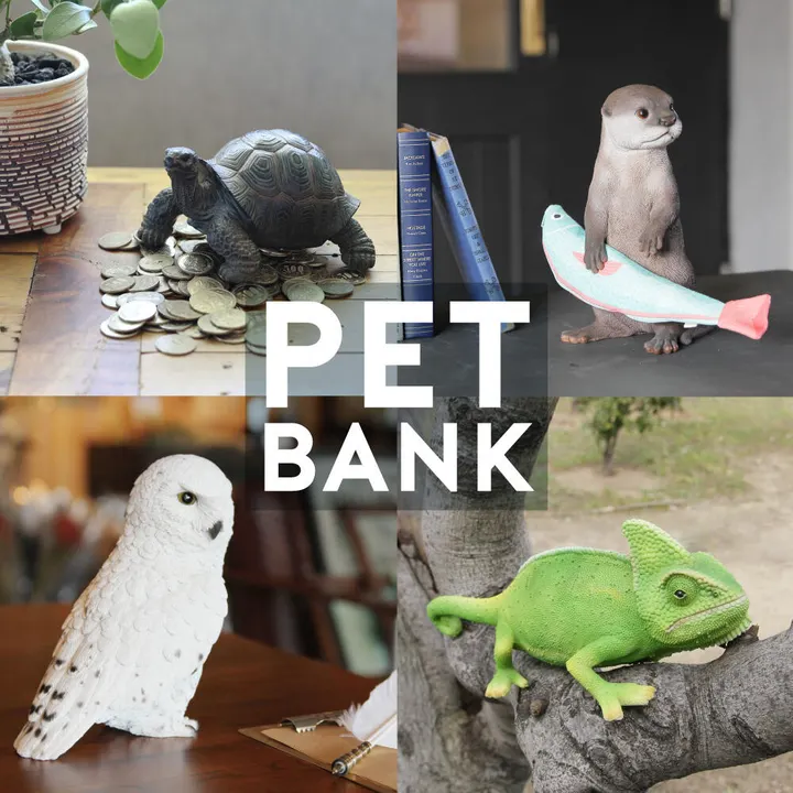 リアルな造形なのにとってもキュート! 思わず撫ででしまいそうな貯金箱です。 お部屋に置くだけでも楽しくなりそう。 ペットを飼えないお宅にもどうぞ。