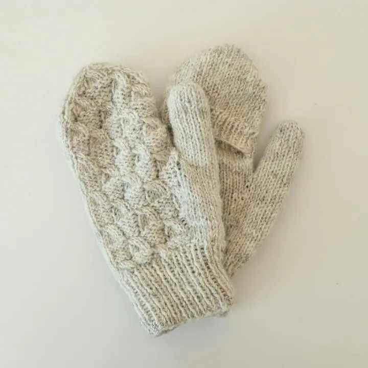 「なにを持ってもかわいいミトン!」 水筒、バケツ、本、植物…。何を持っても成立するキュートさがたまらない! それがこのアランミトンなんです。 「パカッと開いて、しっかり持てる」 ミトンの先がカバー仕様になっているため、必要な時には指先を出すことができます。 携帯を見たい時や、しっかりものを手に持ちたい時などに便利。 「うれしいコットンライナー」 裏地部分は、コットンを採用。化学繊維は使用していません。 肌当たりが良く、安心して着用していただけます。 「ネパールの「手仕事」集団!」 ネパールのフェアトレードNGO団体「Sana Hastakala」では組織運営に必要な分以上の利益が出た際、 編み手さん一人ひとりの生産量に比例した還付金が、サンクスカードを添えて手渡しで返されます。 その大量のサンクスカードは、実はオフィススタッフみんなで手書きしているもの。 代表のチャンドラさんに、「どうして手書きなの?」と尋ねると… 「うちは、名前がHastakala(手仕事)だからね。」との答えが。 仕事に対する情熱と誇りを、垣間見ることができました。 「贅沢なていねいさ、手仕事の味わい」 ノンミュールシングウールを使用した、手編みの風合いに心ときめく4色。 ホワイト、ブラウンは無染色の毛糸を使って編まれており、本来のウールの色合いをお楽しみいただけます。 丁寧に編まれた手仕事のあたたかみで、心も体もぽかぽかに◎ 【2024秋冬新作】【フェアトレード】【エシカルコレクション】