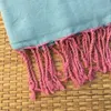 サイズ:約100×200cm 素材:コットン綿 こちらはスタンダードなタイプで、いろいろな使い方がしやすい大きさです。 天然素材コットン100%クロス チュニジアのハマム(トルコ風呂)だけでなく、地中海リゾートのスパセンターでも大活躍なフタFouta 、もともとはハマムを利用するおじさんの大判腰巻です。 いまや色やパターンも楽しくなって、様々な場面で利用されるユニバーサル布に! 湿気の多い日本では乾きにくい、かさばるタオル生地は不要です。 ヨーロッパの方は布使いがとても上手なので、お土産屋さんではこのフタを何枚も購入するというくらい人気があります。 フタの利用法・・・一度タオル代わりに使ってみてください! お部屋では、テーブルクロスやソファーカバー、目隠ししたいところへサッと広げて掛けてみたりもいいですね。 ベッドカバーとしても。コットンの優しい肌触りで滑らかなので敏感肌な赤ちゃん用のタオルケット としてもオススメです。 すぐにお洗濯ができ、乾きも早いので便利です。 手芸好きな方は、ちょっと手を加えてカーテンやクッションカバーなどにも変身させたりと布地としての活用もできます! 屋外では、ピクニック、アウトドアにシートとして。 海辺のバカンスではタオル代わりはもちろん、日よけに。すっと敷いてシート代わりにも。 大判でたっぷりと巻けるのでヨーロッパの方は肌寒いときにはストール代わりに、ひざ掛けなどの活用もOK! ひとつ旅に持っていくにも非常に便利です。