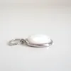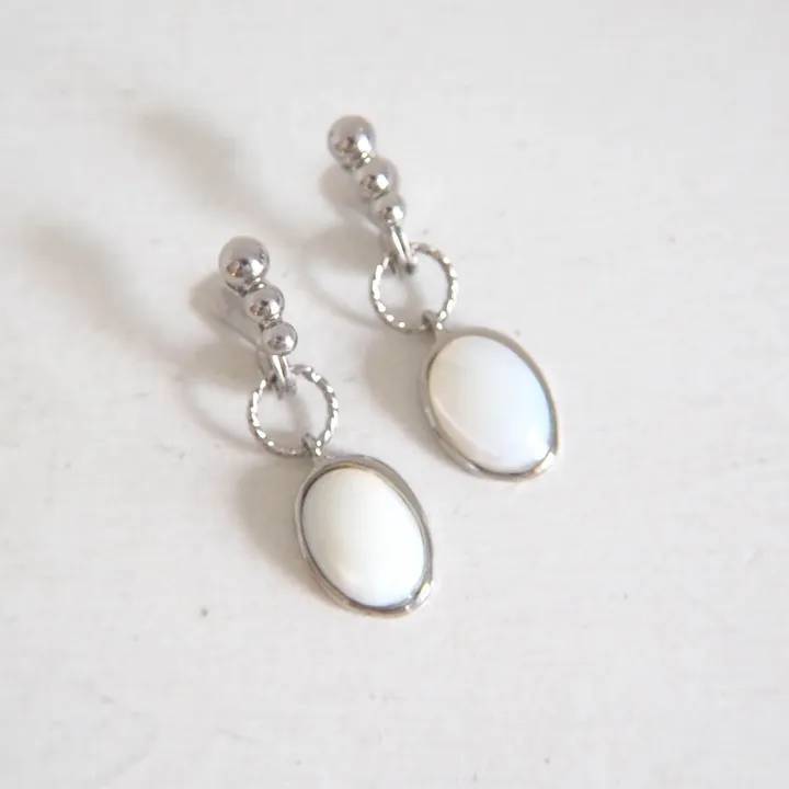 イヤリング【Swing】/粒モチーフ×楕円マザーオブパール2wayイヤリング(取り外し可能) さらっと気負わず楽しんでいただけるようなカジュアルな雰囲気を軸に、 天然素材やガラスで色味やボリューム感を贅沢にオン! わずか数センチの小さなモチーフからも、いくつもの魅力が溢れ出すような愛おしさや 手にとってずっとみつめていたくなるような、心奪われる美しさが備わったアイテムたち。 白、黒、シルバーカラーを用いて軽やかで新鮮な雰囲気を醸しながらも、 どんなスタイリングにもしっくりなじむ安心感とアクセントとなる色味やボリューム感に、懐かしのテイストも織り交ぜ 長く寄り添えるアクセサリーとして丁寧に表現しました。 ////////////////////////////// 天然素材 「マザーオブパール」の魅力 ////////////////////////////// こちらのイヤリングの素材として用いたのは 「マザーオブパール」と呼ばれる真珠をつくりだす母貝。 母貝にはいろいろな種類があることからマザーオブパールにも様々な色調が存在します。 パールのような美しい照りと光沢があり、透明だったり模様の斑だったり。 幾重にも重なる層が一つ一つ異なる表情で輝きます。 その柔らかなトーンの乳白色は上品でナチュラルな雰囲気も併せ持ち、 アクセサリーやジュエリーだけではなくボタンや時計の装飾などの日用品としても用いられています。 親しみある雰囲気の中にも、アクセサリーならではの美しさや特別感を丁寧に散りばめて、 ヴィンテージらしい面持ちもしっかりとプラスしながら仕上げました。 ◆詳細◆ 展開中の『EN146【Modern】/マザーオブパールカボッションイヤリング&ピアス』と同じシェルを用いたイヤリング。 ミニマムな雰囲気の『EN146【Modern】/マザーオブパールカボッションイヤリング&ピアス』とはあえて趣を変え、オーバル形のシェルをチョイス。 ボリューム感、揺れ感、2way使いなどの魅力的な要素をたっぷりと込めました。 ほどよいリラックスムードも漂い、Tシャツや、さらっと一枚で楽しむワンピーススタイルなどのラフな雰囲気の装いにもマッチしそうです。 14×10mmほどのオーバル型のシェルは、ぽってりとした厚みやボリューム感を贅沢に楽しめます。 シェルのチャーム部分は取り外し可能で、チェーンなどに通すとペンダントトップとして楽しんでいただくことも◎ 幾重にも重なる層で構成されたシェルをやさしく包み込むのは、原型から作った厚みや形をラフに崩したオリジナルの石枠。 程よく輝きを添えながら、なめらかなシェルの引き立て役となってくれています。 シェルのチャームを取り外すと、ウーサでも安定した人気を持つロジウムカラーのミニイヤリングに変身! ダークトーンのシルバーカラーのミニイヤリングは、サイズに変化をつけた丸玉が連なったコンパクトなデザイン。 モダンでシャープなイヤリングは、オンオフ幅広く大活躍してくれそうです。 こちらのアイテムで使用したのは「高瀬貝」という種類の、真珠の核にも使われるマザーオブパール。 落ち着いたオフホワイトの優しい色味で、白蝶貝よりも控えめな光沢が美しさを引き立てます。 金具はクリップタイプ。 シリコンカバーも装着しやすく、快適にお使いいただけます。 商品には専用のBOXが無料で付属しますので、ギフトにも最適です◎