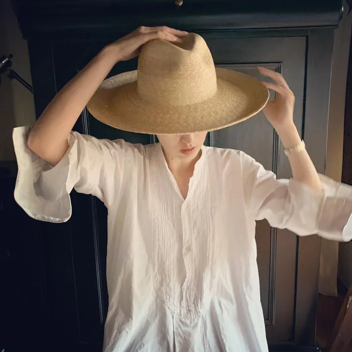 5ミリ前後の細い麦ブレードで作られたソフトハット。クラウンは浅目で、ブリムが広めなので女性らしさもあり、フォルムがメンズライクでもありユニセックスな商品です。