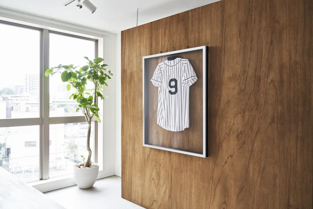 開閉式のため、ユニフォームの掛け替えが前面からできるユニフォーム額。 野球・サッカー・バスケ・アメフト・Tシャツ・レプリカ・オーセンティックなど、様々なサイズに対応。 チームに合わせた、裏地の布色の変更など、カスタマイズも可能です。