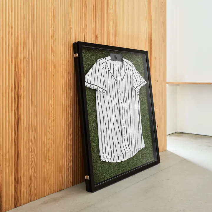 開閉式のため、ユニフォームの掛け替えが前面からできるユニフォーム額。 野球・サッカー・バスケ・アメフト・Tシャツ・レプリカ・オーセンティックなど、様々なサイズに対応。 チームに合わせた、裏地の布色の変更など、カスタマイズも可能です。
