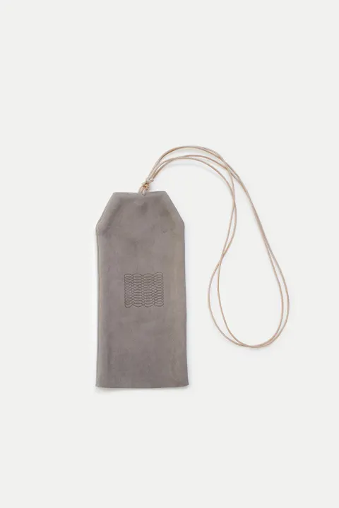 革紐の先端に付いているステンレスフープに眼鏡のテンプル部分を取り付け、付属のカバーを掛けて首や肩から下げて使用するタイプの眼鏡カバー。上質で柔らかいシープスキンを使用しているので、眼鏡を傷つけにくく、外した眼鏡を安全に身に付けることができます。ファッションの一部として、持ち物の少ない方へおすすめです。