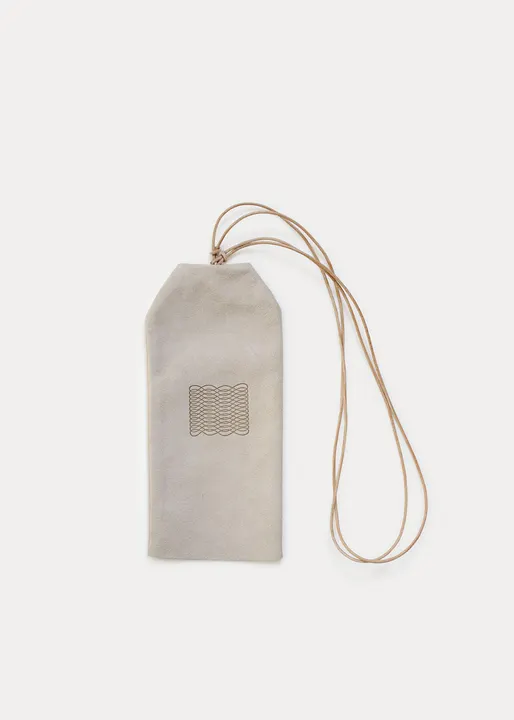 革紐の先端に付いているステンレスフープに眼鏡のテンプル部分を取り付け、付属のカバーを掛けて首や肩から下げて使用するタイプの眼鏡カバー。上質で柔らかいシープスキンを使用しているので、眼鏡を傷つけにくく、外した眼鏡を安全に身に付けることができます。ファッションの一部として、持ち物の少ない方へおすすめです。