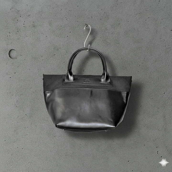 日本製 キャンバスハンドバッグ 全5色|Lemonton<ルモントン> ブラックキャンバス x ブラックレザー