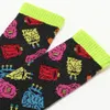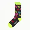 フジサキタクマ / TAKUMA FUJISAKI Collaborationソックス 第一弾は、モールミュータントだらけのソックス! カラフルで楽しい藤崎さんの世界観を靴下で最大限表現しました。 蛍光カラーとまぶしい配色は足元から元気をくれる特別な一足。 モールミュータントたちが靴下の中で自由に遊び回るデザインです。 オレンジ×ネイビー、ライムグリーン×ブルー、ブラック×ネオンイエローの3色展開。 ガチャガチャで出会ったモールミュータントに魅了されたHOiSUMが熱心なコレクターに。 作者のフジサキタクマ氏の個展会場で直接コラボレーションを提案したことから実現した、特別なコレクションです。