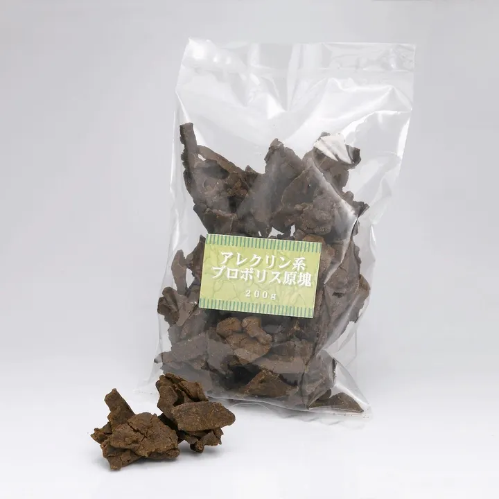 ミツバチが巣箱のまわりに集めて作る、自然由来の素材「プロポリス原塊」です。加工を施さず、そのままの状態でお届けいたします。 ご家庭で、食用エタノールやお好みの蒸留酒(アルコール度数70度以上推奨)に漬け込むことで、手づくりのプロポリス抽出をお楽しみいただけます。自然素材を活かしたクラフトや、ナチュラル志向の暮らしに関心のある方におすすめです。 〈使用の一例〉 プロポリス原塊を清潔なビンに入れ、食用エタノールや蒸留酒を注ぎ、約1ヶ月ほど漬け込みます。その後、コーヒーフィルターなどで濾してご使用ください。オリジナルの抽出液が完成します。 【保存方法】直射日光・高温多湿を避け、冷暗所で保管してください。 ※本製品にはミツバチ由来の成分が含まれます。1歳未満のお子様には与えないでください。 ※ご使用にあたっては、体質や目的に応じてご自身の判断でご利用ください。