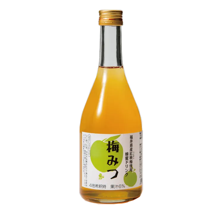 希少な福井県産紅映梅をはちみつ漬にした爽やかなジュース。 福井県でのみ栽培される希少品種「紅映梅」を使用した無添加ドリンク 梅みつ 福井県でのみ栽培される「紅映梅(べにさしうめ)」を使用。紅映梅は、福井県でのみ栽培される希少品種。一般的な梅が黄色く熟していくのに対し、紅映梅は陽の当たった部分が紅色に染まるのでこの名が付きました。明治時代に「雪の多い北陸の地でもしっかりと花が咲き実の成る品種」として改良が重ねられ、種が小さく肉厚、果汁が多いのが特徴です。皮が薄く、ひとつひとつ丁寧に手もぎしなければならないために収穫量が少ない希少な梅です。 とても傷みやすい紅映梅は産地から金澤やまぎし養蜂場まで直送便で運ばれ、到着後すぐに漬け込み作業を開始します。梅は一粒づつ手作業でヘタを取り、切り込みを入れていきます。また、最高の状態で漬けこむためには、いち早く漬けこまなければならず、この日ばかりはスタッフ総出で仕込みます。 希少品種・紅映梅の繊細な風味、旨みを引き立てるため、上品な香りでクセのないはちみつを厳選して使用しています。梅の風味を逃さないように漬け上がりまで温度を10℃に保ち、じっくりと低温で熟成させています。 【おすすめの使い方】 希釈タイプのドリンクのなので、炭酸やお水、お湯割りなど時期や体調に合わせて調整できます。 【ご利用シーン】 ・ウェルカムドリンク ・ファーストドリンク ・お酒が苦手な方へ ・小さなお子様やご年配の方へ 【レシピ】 冷水・炭酸またはお湯などで4倍に薄めてお召し上がりください。 お酢を加えて梅みつサワーに、酢の物にもおすすめです。 ・果汁成分が浮遊・沈殿する場合がありますが、品質には問題ありません。 ・開封後は冷蔵庫で保存してください。 ・原料に蜂蜜を使用しています。1歳未満の乳児には与えないでください。 ※ハニードリンクは未開封の場合、常温保存が可能ですが保存料不使用のため夏場の高温で色や風味が劣化する場合があります。品質には問題ございませんが、気になる方は冷蔵庫での保管をおすすめします。
