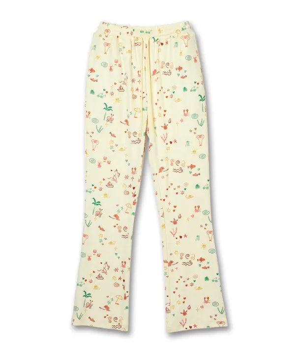 ・生地の表面に小さな穴(針抜き)があり、ソフトでしなやかな肌触り。 ・針抜き編みならではの凹凸のある表面が表情豊かで、カジュアルながら上品な雰囲気も演出できます。 ・軽くてなめらかな生地感と柔らかく伸びる素材で、ストレスフリーな着心地。 ・ウエストはゴムが入り、スピンドルで調整が可能。 ・ゆるすぎず、細すぎずのストレートラインのシルエット。 ・サイドとバック、計3つのポケットがあり、バックポケットにはロゴ刺繍入り。 ・そのままパンツとしても、ビッグシルエットトップスやワンピースの下に合わせるにもおすすめ。 ---------------------------- 透け感:なし 伸縮性:あり 光沢:なし ポケット:あり 厚み:やや厚手 ---------------------------- 2026 Spring/Summer "SEA" 光をまとい、たゆたう海。 やわらかな波、貝殻の残る砂浜、 寄せては返す音が、心をほどく。 日差しの中の砂浜の情景、 静かに息づく海の生物たち。 広く、自由で、境界はいつの間にか溶けていく。 6名のアーティストが描く、海のかたち。 日々の装いに、そっと重ねる。 Crayon Doodles ちいさなときめきが、 ごちゃごちゃ泳いでる。 ARTIST PROFILE : Aimi Odawara llustrator / I&ME Designer ”スマイル”に代表されるミニマルなモチーフを、独特な色彩と皮肉の効いたユーモアで描くアーティスト。昨今は絵画に止まらず、陶器、ミラー、ジュエリー、ラグなど制作の手法を拡げている。