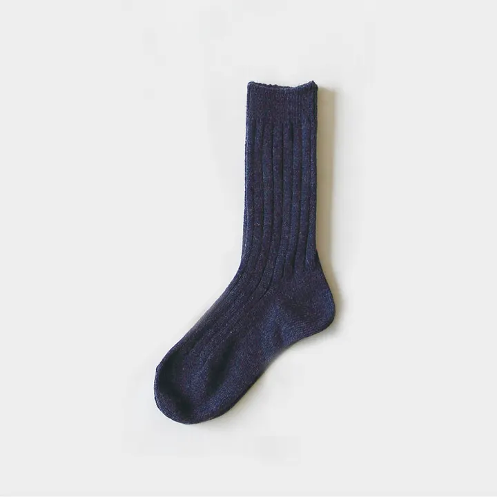 WOOL ソックス リブウィーブ ベーシック メンズ NV(ネイビー)