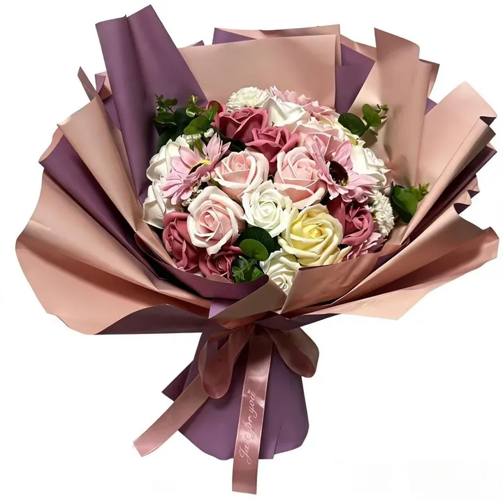 ※プレゼントに最適なソープフラワーの花束です。ほのかに石鹸の香りがする、石鹸素材から作られた造花なので、生花に比べて、長く鑑賞が楽しめます。