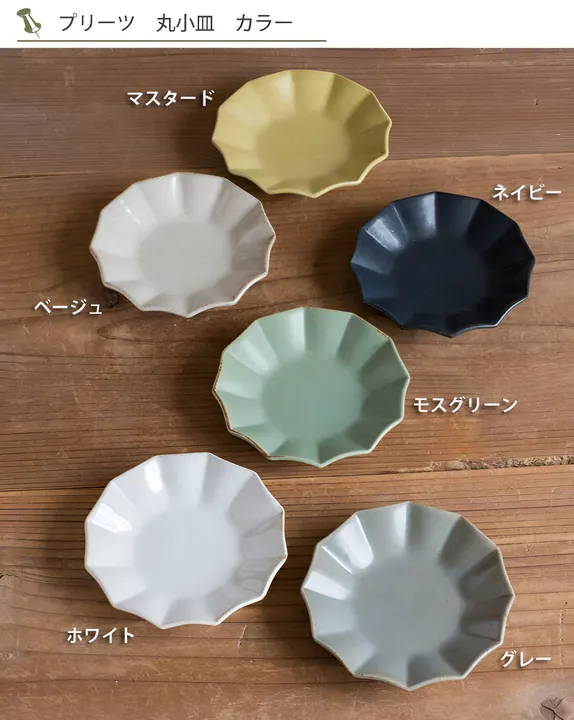 スカートのひだのようなふちが、土の質感と共に表現された和にも洋にも使いやすい6色の小皿です。