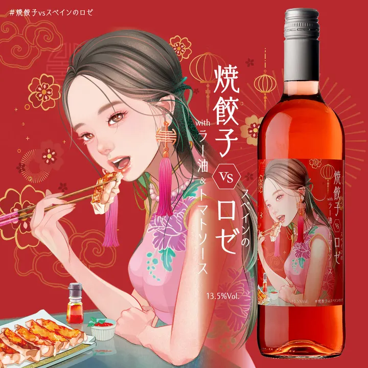 【焼餃子×ラー油×トマトソース!?これが「スペインのロゼ」に合う!】 カリッと焼けた皮の香ばしさ、一口かじれば中から溢れる肉と野菜の旨み! そこにちょっぴり一工夫、いつものラー油にトマトソースを合わせてみて! トマトの酸味とラー油の辛味が肉の旨みと混ざり合ったら、仕上げにこのスペインのロゼを流し込む。これぞ、餃子の新発見なのです♪ 【大人気の田邉公一ソムリエ監修 意外性のマリアージュがすごい】 この意外な(?)組み合わせを監修してくれたのは、大人気の田邉公一ソムリエ。既存のお料理にちょっと一工夫してワインとの相性をググっと高める、まさにプロのマリアージュ。 ワインのイチゴやラズベリーのような熟した濃い果実味が焼餃子に合う! 【冷やしたロゼと熱々焼餃子で優勝確定 温度の変化も楽しんで♪】 熱々の焼餃子を口に放り込んだら、冷たいロゼで追いかける。想像するだけで至福の瞬間…! ドライでしっかりしたタイプのロゼなので、テーブルの上で温度が上がるにつれて徐々に開いてくる香りの変化もぜひお楽しみください。 ◎おススメの飲み方 ドライでしっかりした味わいのロゼワインなので、まずはよく冷やし、熱々の餃子と合わせて。そこから温度が上がるにつれて開いてくる香りを楽しみながら、ワイン→餃子→ワインの無限ループをお楽しみください!