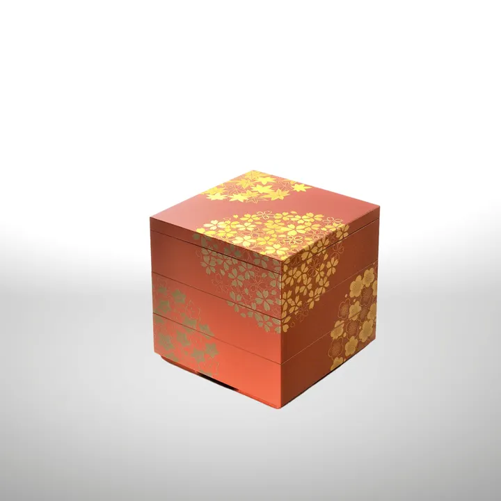花丸春秋三段重 4.0寸(12×12×12cm)古代朱