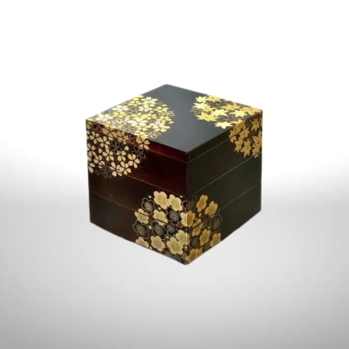 花丸春秋三段重 4.0寸(12×12×12cm)溜色
