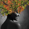 【現代アートポスター】紅葉 植物 自然 女性 モノクロ 写真コラージュ A3(M) フレームセット:無垢 41.0×52.5cm