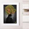 【現代アートポスター】紅葉 植物 自然 女性 モノクロ 写真コラージュ A4(S) フレームセット:白 29.4×38.4cm