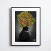 【現代アートポスター】紅葉 植物 自然 女性 モノクロ 写真コラージュ A2(L) フレームセット:黒 55.1×73.3cm