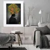 【現代アートポスター】紅葉 植物 自然 女性 モノクロ 写真コラージュ A2(L) フレームセット:白 55.1×73.3cm