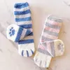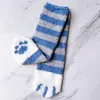足元ぽっかぽか 柔らかな肌触りのソックス ふわふわと柔らかな厚みのあるフリース素材のルームソックス しまネコの足モチーフでとっても可愛い! もふもふとした素材で、まるでネコにくるまれているように優しく足元を包み込みます。 サイズ:フリー(22~25cm) 置き丈(長さ):14cm 素材:ポリエステル・ポリウレタン