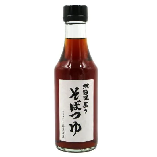 【 商品特徴 】 もしこの商品の特徴をひと言で表すとしたら、 「だし屋が使いたいそばつゆを、本気で作ったらこうなりました!」ということです。 創業から100余年、だしにこだわり続けてきた湯浅商店の”完全オリジナル無添加そばつゆ”。 【 味わい 】 通常のそばつゆに使用するだし原料の約2倍もの原料を使用することで、どこまでもおだしが香るそばつゆに仕上げました。 【ダシのベース】 サバ、カツオ、宗田カツオ、昆布 【カエシのベース】 本みりん、砂糖、醤油 お出汁は、甘味の強いサバ節をベースに、本枯れのカツオ、宗田カツオ、昆布を合わせました。 味付け(カエシ)は、関東風のしょうゆが効いたやや辛口の味わいです。 【 店長のおすすめポイント! 】 まずは、ひと口そのまま飲んでみてください。 味の濃いかえしのうま味を感じた直後、サバ、カツオ、宗田カツオ、昆布などの合わせだしのうま味を舌全体で感じることができます! そして、おそばを食べた後は、そば湯で割って飲んでみてください。 このそばつゆはかなりうす~~くそば湯で割っても、最後の最後までお出汁の風味、うま味を感じることができますよ! 通常、そばを1人前食べ終わったあとのつゆというのは、塩味が薄れ、味全体がぼやけるものです。 ところが、このそばつゆは違います。 そばを1人前食べ終わった後でも、多少の塩味は薄くなりますが、だしの香りは薄まりません! なので、食べ終わった後、温かいそば湯をつゆに入れて割ることで、まるでパァーーーっと花が開くように、ダシの風味が鼻腔を通り、舌の奥から鼻全体を包むようにしておだしが香ります。 味付けは、関東風のしょうゆが効いたやや辛口。 でも実は、かえしには薄口しょうゆ(白しょうゆ)を使っているんです! 写真だと、濃口しょうゆを使った普通の関東風のつゆに見えるかもしれません。 そば通の方ならきっとわかっていただけるはず。 瓶を持ち上げ、光に透かして見ると、たしかに関東風にしてはやや透明感のある薄い色合いをしています。 なぜならこれは、ほとんどだしの色なんです。 あくまで、だしがメイン。だしが命。 濃いだしの上にそっと味付けをするように、しょうゆ、みりん、砂糖などのかえしを絶妙なバランスで配合しました。 【 開発秘話 】 そば屋へ卸す鰹節問屋だからこそ、「こんなつゆがあったらいいな」を常に考えてきました。 「そばつゆの命は、やっぱりだしなんです。」 弊社3代目湯浅勇は、自身40年のキャリアを振り返ってこう語ります。