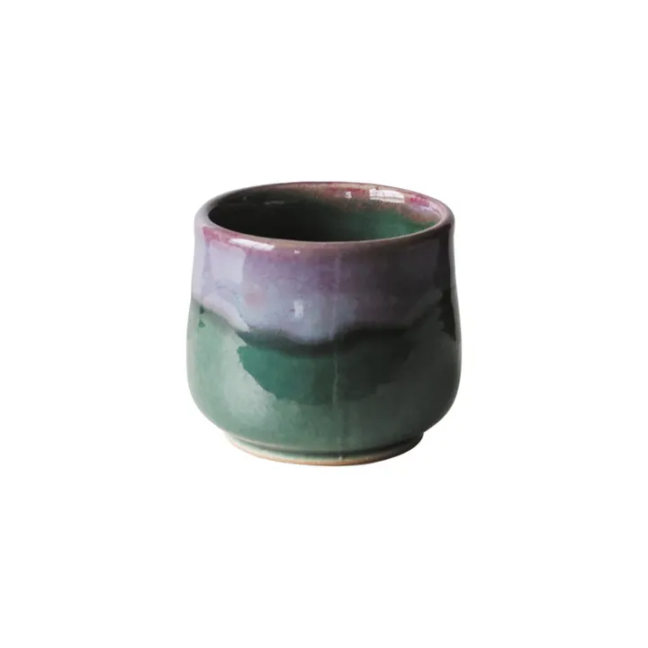 辰砂と呼ばれる特別な釉薬を使用し、幻想的な色合いを生み出します。 釉薬の調合、重なり、焼き上がりによってその瞬間にしか出来ない表情を見せてくれます。 窯変の美しさや個性を堪能できるアイテムです。 湯呑みのころんと可愛らしい丸いフォルムは、手にもおさまりやすくて持ちやすい。 口元のなめらかなデザインが、口に運んだときにも飲みやすくて心地よい使いやすい湯呑みです。