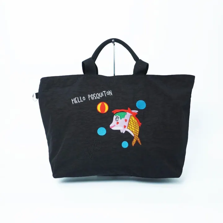 【商品説明】アーティストYUのパスキートンフレンズの刺繍がとてもキュートです。 ▲お取り扱いの注意 本製品は濃色、刺繍糸の色落ちすることがあります 洗濯は単独で洗って下さい。 〔サイズ詳細〕 高さ 37㎝ 横幅〔上部〕60㎝ 横幅〔下部〕44㎝ マチ 18㎝ ハンドルの高さ 15.5センチ ショルダーの高さ 36㎝ 〔素材〕 ポリエステル100% made in china 旅先でも可愛いバッグを持ちたい、そんなあなたにおすすめのトラベルbag。軽くて丈夫なので、旅行にも日常にもぴったりです。pasquitonキャラクターの刺繍があしらわれたデザインは、きっとたくさんの人の目を引きます。 特に、このバッグの素材は洗えるのが嬉しいポイント。旅行先で汚れが気になっても、帰ってすぐに洗えばいつでも清潔に使えます。また、コンパクトなので旅先での機内持ち込みにもオススメです。 このトラベルbagを持って旅に出かけると、一気に気分も上がります。普段使いでも可愛く持てるので、ぜひ一つ持っておくと便利です。