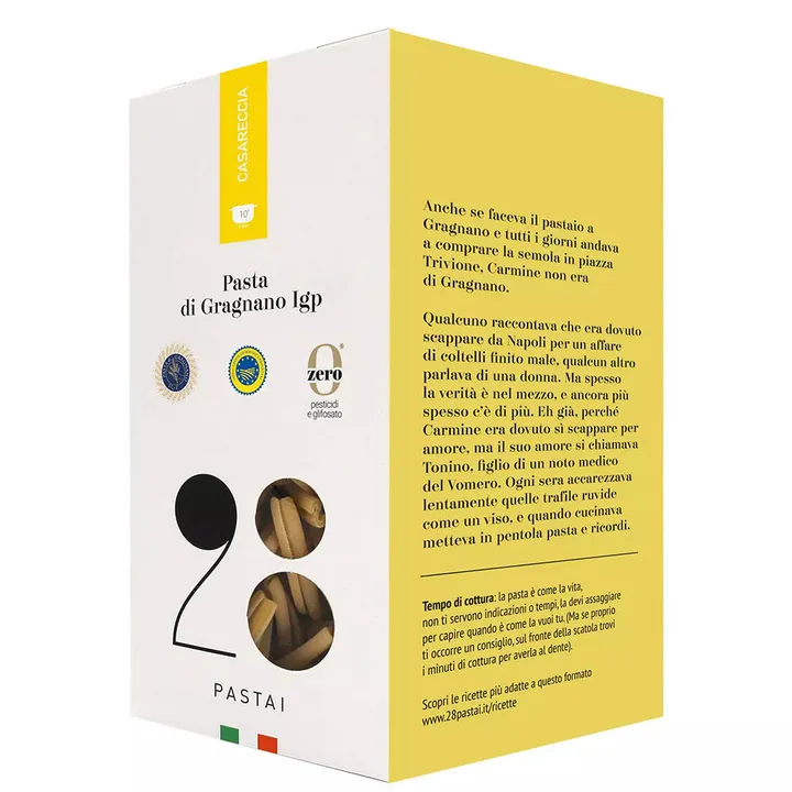 28PASTAI(28パスタ)無農薬 カサレッチェ CASARECCIA 500g/イタリア版ミシュラン【ガンベロロッソ】受賞 /イタリア グラニャーノ産 1個