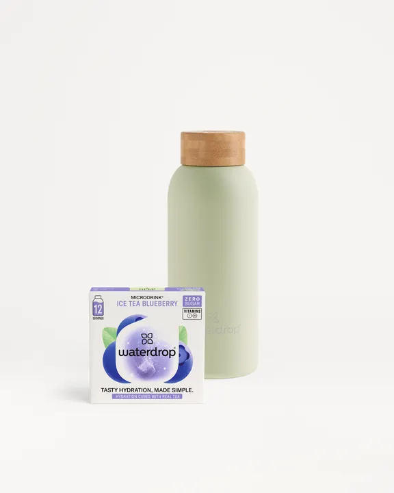 12個入り・天然の茶葉、ビタミン、砂糖不使用・ 二重構造ステンレス製ボトル、真空断熱 天然エキス 栄養価の高いビタミン 砂糖不使用 ヴィーガン ローカロリー 真空断熱スチールボトル 商品説明 ブルーベリーとまろやかなホワイトティーのすっきりとした味わいを楽しんで。二重構造のステンレス製で、飲み物を最大24時間保冷、または12時間保温します。400mlからお好みのデザインをお選びください。 サステナブルな飲み物の選択 waterdropregなら最小限のパッケージで、500mlペットボトル飲料と比べて プラスチックを最大98%削減。 waterdropregの使い方 水をもっと飲むためのシンプルな3つのステップ: WATER: 400-600mlの冷水 DROP: キューブを溶かす ENJOY: 爽やかでフルーティーな水を楽しむ 最高の果実エキスと本物の茶葉 Waterdropreg Microdrink ICE TEA BLUEBERRY ハイドレーションドロップ 12個 ・ホワイトティー - ブルーベリー ・天然果物・植物エキス ・栄養価の高いビタミンC/B3 ・ローカロリー ・砂糖不使用 ・人工保存料不使用 ・グルテンフリー ・ヴィーガン ・ 低カフェイン含有量(2.5-5mg/100ml) ・直射日光を避け、乾燥した涼しい場所で保存してください。 原材料および栄養成分情報 ブルーベリーエキスとホワイトティーエキスに甘味料とビタミンを加えた、爽やかなドリンクを作るための発泡性キューブ。 平均栄養価/500 ml 当たり エネルギー 4.3 kcal タンパク質 0 g 総脂質 0 g 炭水化物 0.4 g 食塩相当量 0.2 g ビタミンC 18.0 mg ナイアシン 3.2 mg 原材料:白茶エキス、ブルーベリーエキス/pH 調整剤、香料、炭酸 Ca、甘味料(スクラロース)、ビタミンC、ナイアシン 最高の原材料を詰め込んだキューブ 最高品質の果物や植物のエキスと本物のお茶で作られたマイクロドリンク ICE TEA BLUEBERRYで、いつもの水をフルーティーで爽やかなドリンクに変身! ブルーベリー マイルドでフルーティーな甘い香り。 ホワイトティー まろやかで、ほのかな甘みのあるフローラルな風味。 ビタミンC 免疫機能をサポート ナイアシン エネルギー代謝の維持を促進する効果があります。 爽やか&刺激的! 実用的なデザインで持ち運びも簡単!家族や友達とシェアするのにも最適です。自分用にも、みんなで一緒に楽しむ場面にも幅広くご活用いただけます!