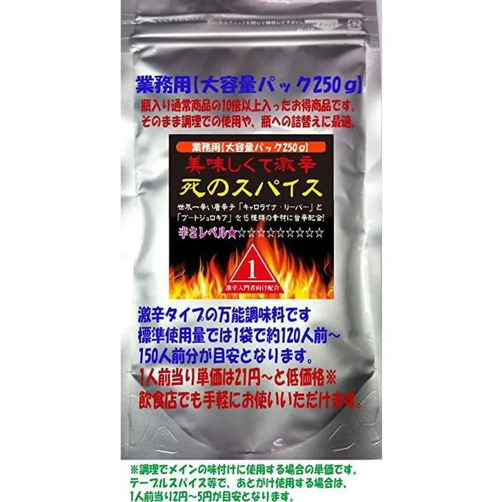 激辛唐辛子 調味料 アウトドア BBQ カプサイシン 香辛料 死のスパイス1辛 業務用 大容量 250g