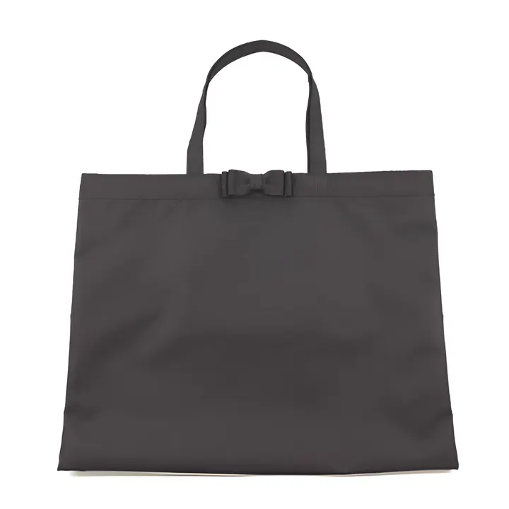 フォーマルシーンから普段使いまで便利にご使用頂ける軽量のサブバッグです。弱撥水加工ナイロンを使用しているので雨の日のご使用も安心。 ネイビーとブラックの2カラー展開です。 折りたたむとコンパクトになりますので、お買い物のお供や携帯サブバッグとしても最適です。内ポケットが1個あります。 お子さんのレッスンバッグとしてもお使い頂けます。 リボンは国産のグログランテープでダブルリボンをあしらい、控えめで上品に仕上げています。 ●ご購入されたお客様の声(一部抜粋) ・マチがないので荷物があまり入らないかと心配しましたが、大きさがあるので十分な収納力。逆にマチがないからスッキリしていて良かったです。 ・とても上品な雰囲気がただよう商品です。大きさもちょうどよいかと思います。 ・生地がしっかりしている、マチが無いわりに結構荷物が入る、ダウンを着ていても肩にかけられる点がとても良かったです。黒なので色々な場面でサブバッグとして沢山使いたいと思います。