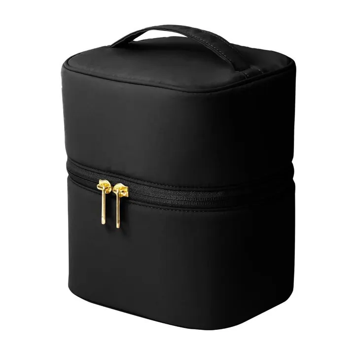 「メイクアイテムを厳選しないと入らない」というお悩みがある方や、スキンケアボトル、コンパクト類まで全てまとめたい方におすすめのバニティポーチです。 手持ちのメイクアイテムやスキンケアアイテム、 縦長サイズのものが多くないですか? メイクブラシ、リップグロス、アイブロウペンシルや、 化粧水、乳液、ボディクリームやヘアオイルなど、 実は縦長サイズのものが多いことに気付きます。 atRiseから新たに生まれた化粧ポーチは、 そんな縦長アイテムも収納しやすいトールデザイン。 細長いアイテムはギャザーポケットを活用して仕分けができ、 中でバラバラになる心配はありません。 高さはあるものの、真ん中のファスナーで開ける仕様なので、 中のアイテムが一目で見て分かるデザイン。 背の低いアイテムや小さなアイテムも取り出しやすくなっています。 スタッフ一番のこだわりポイントは、上蓋の収納ポケット。 デッドスペースの上蓋部分が活躍できるようにデザインしました。 ファスナーポケットには、替えのパフや、 ストックアイテムを入れるのがオススメ。 オープンポケットには、ポケットティッシュやコットンなど、 サッと取り出したいものを入れるのがオススメです。